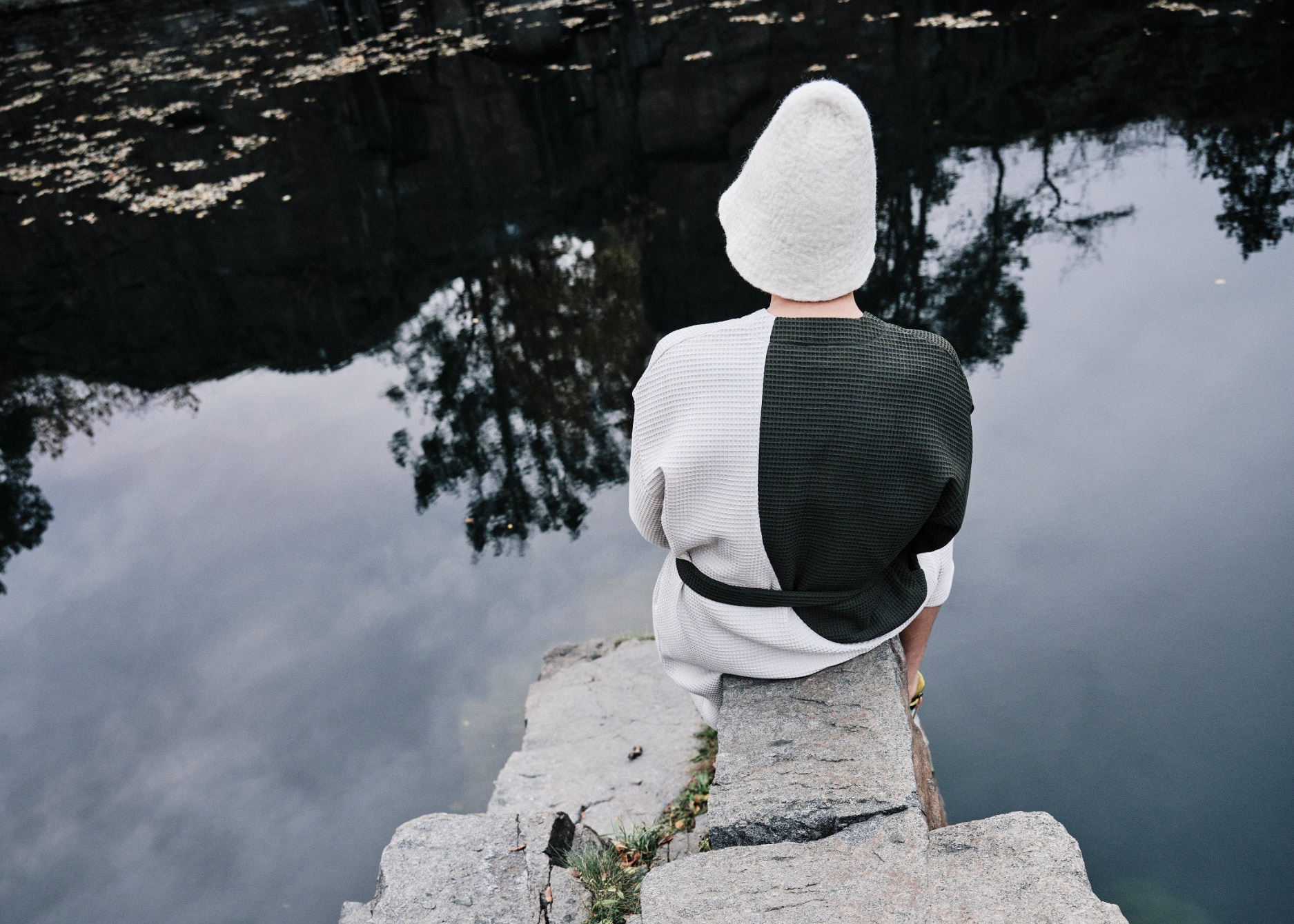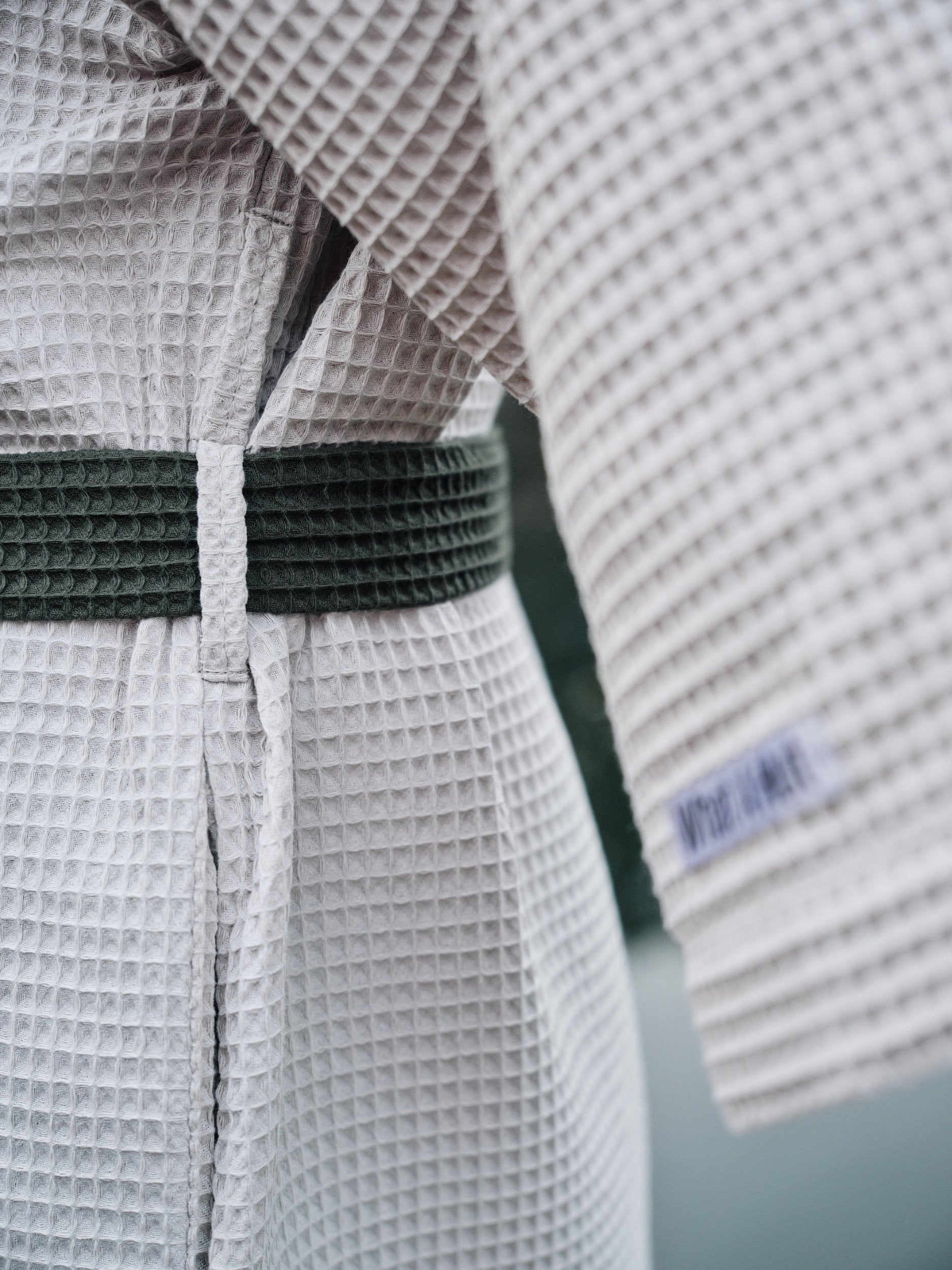 Na dotek příjemná vaflová tkanina ze 100 % bavlny je esencí županů What a Hut. Její charakteristická struktura s výrazným, pravidelným čtvercovým vzorem zaručuje rychlou absorpci vody a prodyšnost. Můžete se tak nechat unášet saunovým cyklem, nebo si pohodlí županu užít v atmosféře své chaty či domova – kde vás příjemně zahřeje i v chladnějším počasí. Střih zeleného barevného kruhového rukávu vychází ze signifikantního designu sauny s perforovanou stěnou.